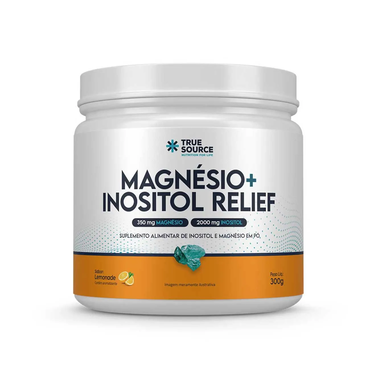 Magnésio - True Magnésio + Inositol Relief 1.0 - True Source Nosso suplemento combina dois componentes essenciais para o bom funcionamento do organismo. O Magnésio é um mineral que participa de mais de 300 reações metabólicas no corpo humano, é importante para saúde óssea, muscular, cardiovascular, intestinal, assim como na saúde do sistema nervoso central. Carências desse mineral podem acarretar diversos prejuízos à saúde. Já o inositol é um componente que faz parte da família das vitaminas do complexo B. Está presente na membrana das células, principalmente as células do sistema nervoso central, otimizando a comunicação entre os neurônios.